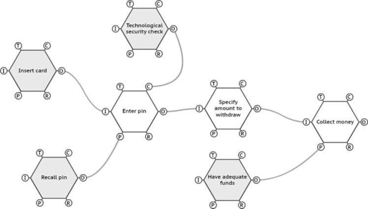 These attributes are referred to as ‘aspects’, and are used to link activities and artefacts together as shown in the example on retrieving cash from an ATM in the figure below (taken from [1]).